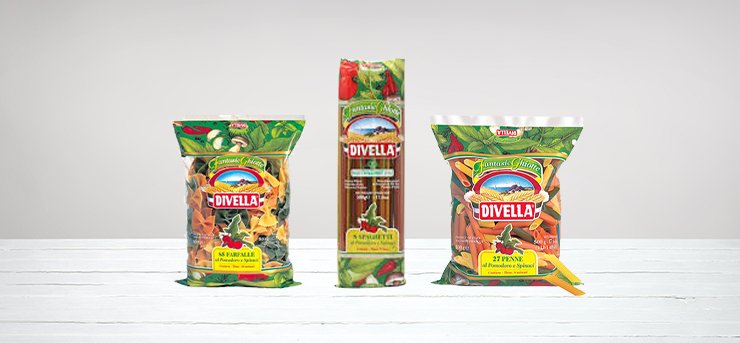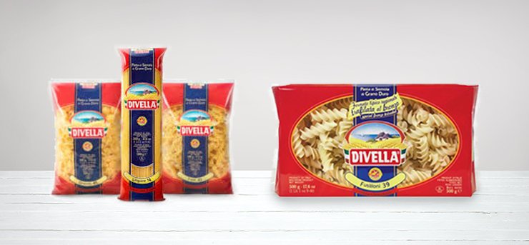 Διαθέτει μια πλούσια γκάμα η οποία περιλαμβάνει πολλά διαφορετικά σχήματα ζυμαρικών με σκοπό να ικανοποιήσει ακόμη και τις πιο απαιτητικές γεύσεις. Ένα πιάτο Pasta Divella είναι η εύκολη και γρήγορη λύση στο τραπέζι κάθε Ιταλικής οικογένειας, που διασκεδάζει μικρούς αλλά και μεγάλους.