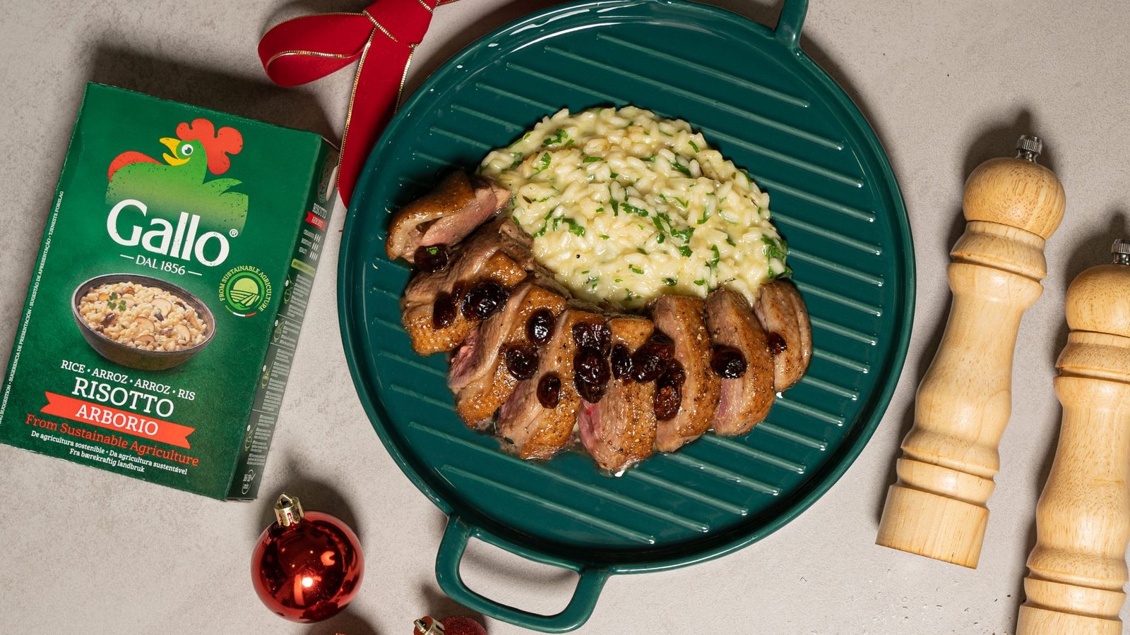Ο σεφ Θεόδωρος Ελευθερίου φτιάχνει ένα άκρως γιορτινό πιάτο με ριζότο Riso Gallo, πάπια και σάλτσα Cranberry που ξεχειλίζει απόλαυση! 🎄😉 Δες πιο κάτω τη συνταγή!