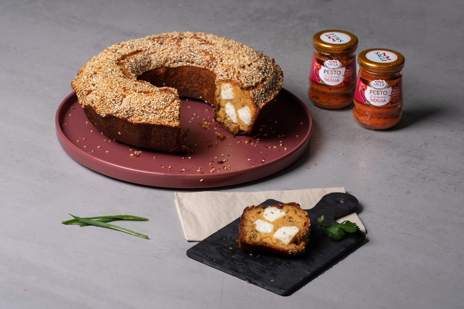 Με το Sacla Nduja Pesto μπορείς να κάνεις...θαύματα! 😉 Ο σεφ Γιάννης Γιαγκουλής φτιάχνει αλμυρό κέικ με μανούρι, δυόσμο και Sacla Nduja Pesto και σου το αποδεικνύει, μέσα σε λίγα απλά βήματα! Θες να το φτιάξεις κι εσύ; Δες πιο κάτω τη συνταγή!