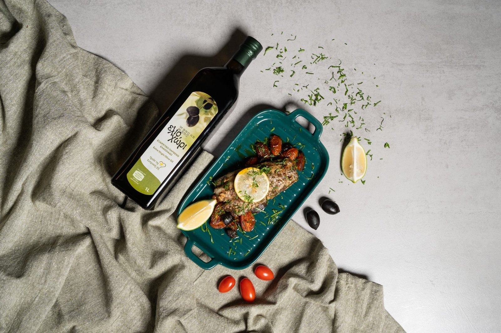 Φιλέτο μπακαλιάρου με ντοματίνια, ελιές και ελαιόλαδο Ελιοχώρι από τον σεφ Θεόδωρο Ελευθερίου