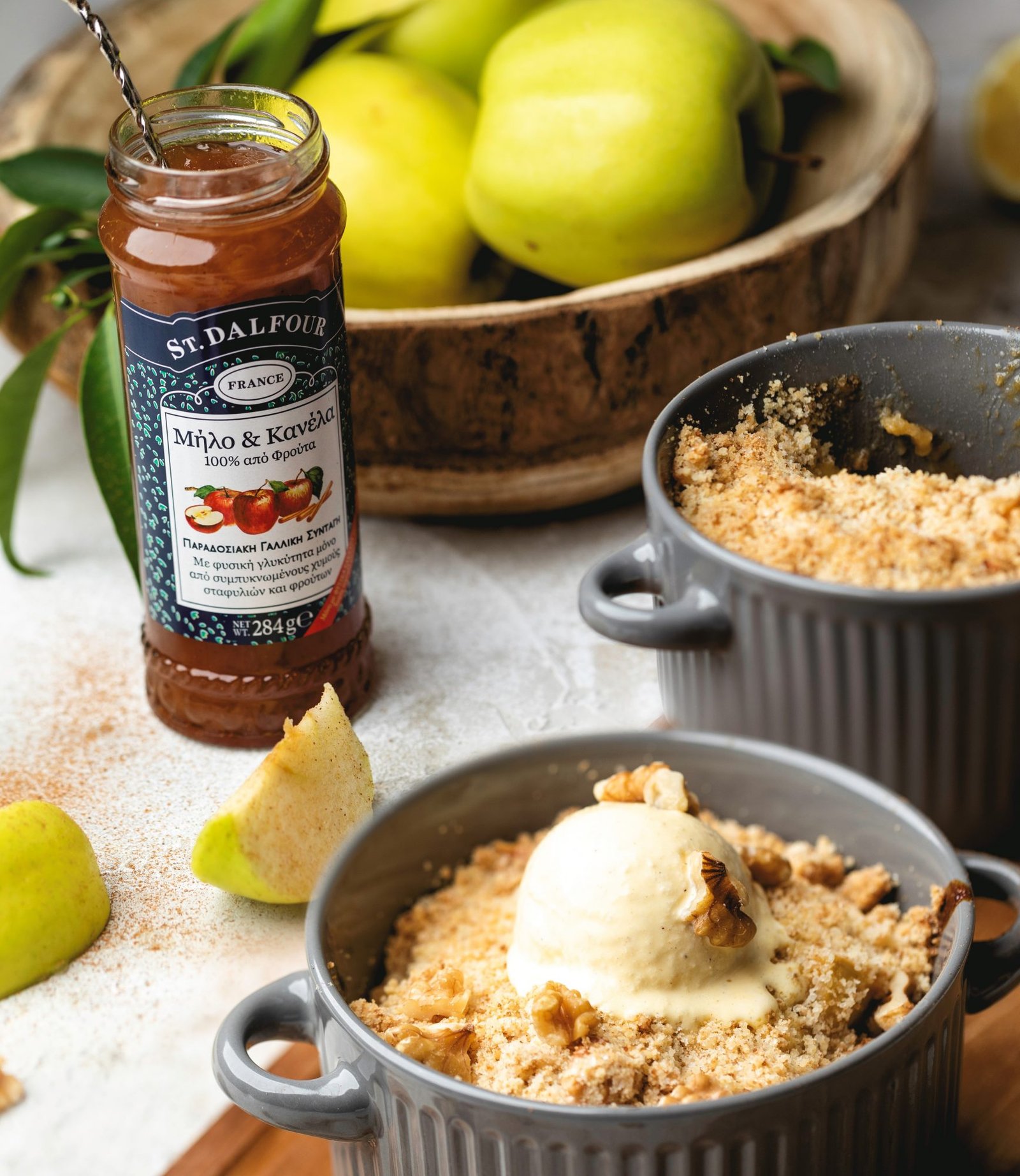 Λατρεύεις τον συνδυασμό Μήλου και Κανέλας; 🍏 Η σεφ Αθηνά Λοϊζίδης σου προτείνει Crumble μήλου με μαρμελάδα St.Dalfour Μήλο και Κανέλα για να τον απολαύσεις στο έπακρο 😉