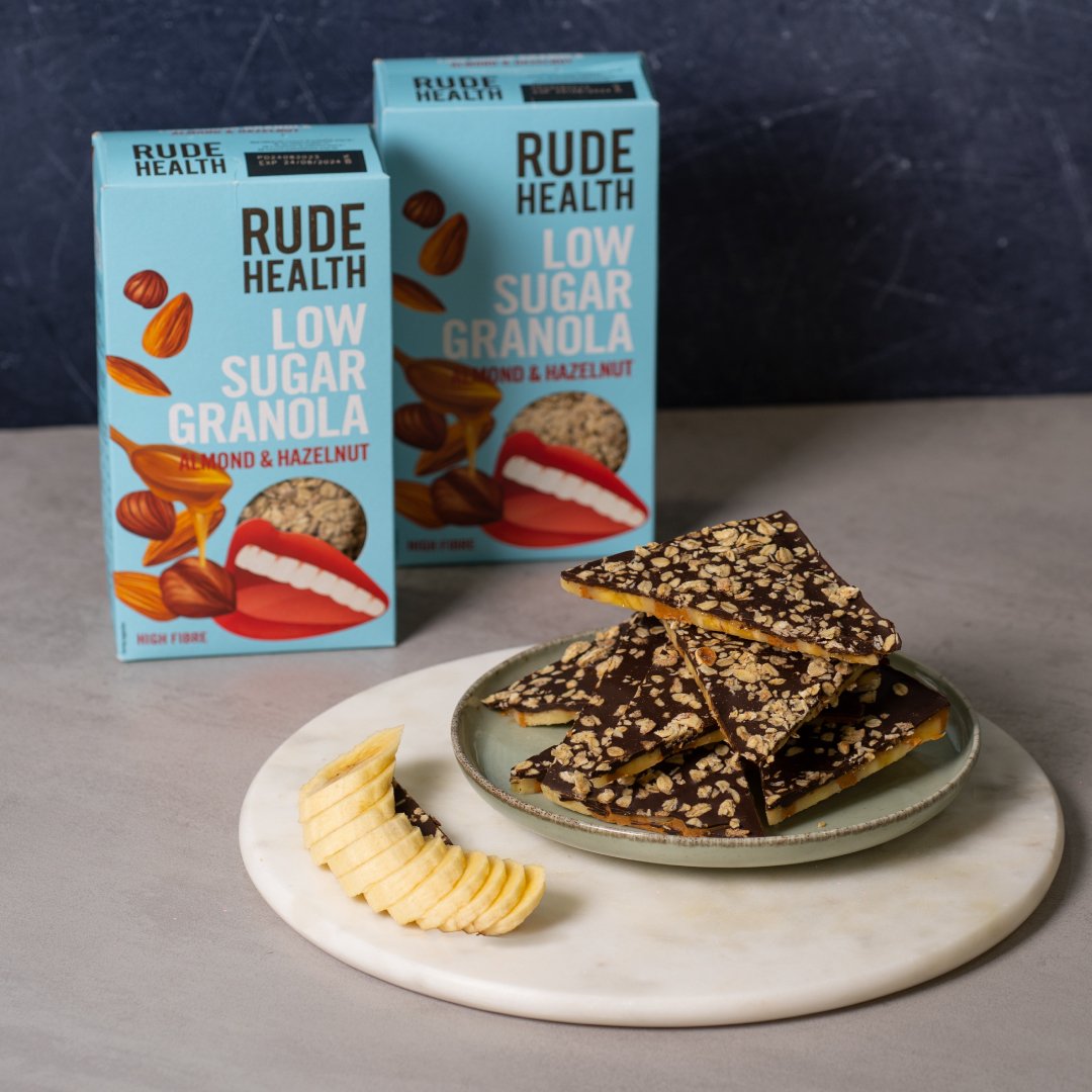 Ο Σεφ @theo_eleftheriou 🧑🍳 φτιάχνει το πιο λαχταριστό snack για να το απολαύσεις στο σπίτι ή στο γραφείο! 🥰 👉🏻 Granola Bark με Rude health Low Sugar Granola, μαύρη σοκολάτα και φυστικοβούτυρο. 🙌🏻