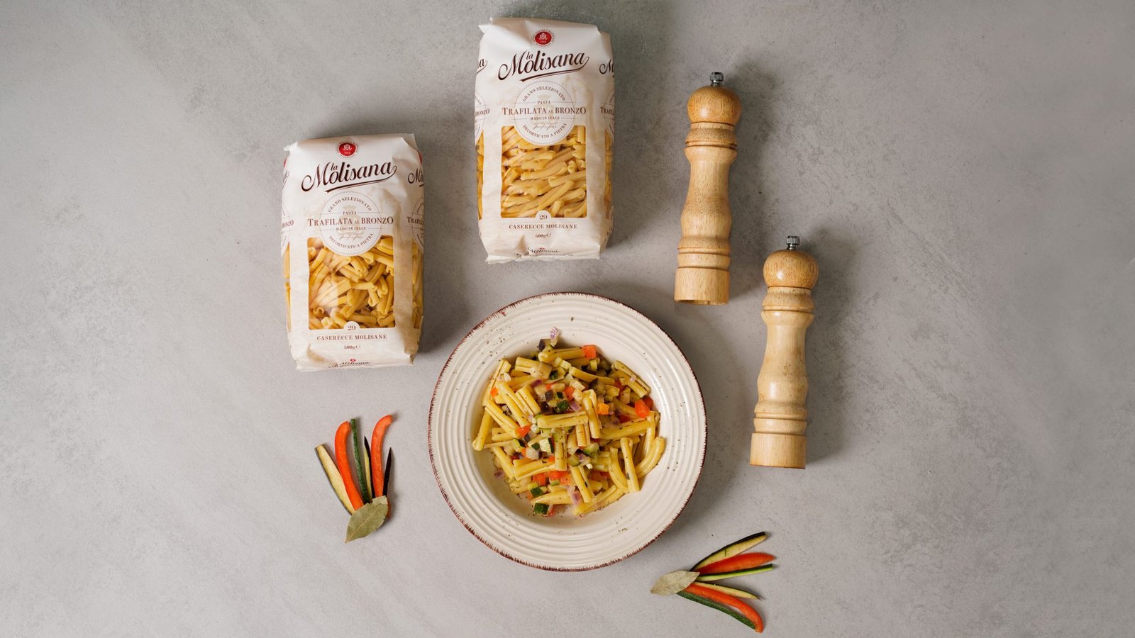 Ο σεφ Γιάννης Γιαγκουλής φτιάχνει μια πολύχρωμη και άκρως καλοκαιρινή μακαρονάδα με La Molisana Caserecce και μεσογειακά λαχανικά, που θα σε ενθουσιάσει από την πρώτη μπουκιά! 😉🍝 Δες πιο κάτω τη συνταγή!