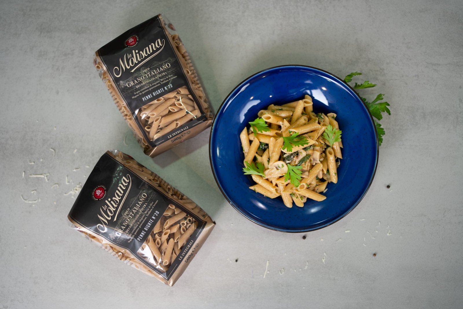La Molisana Penne Rigate Integrali με μανιτάρια, σπανάκι και λευκό κρασί από τον σεφ Θεόδωρο Ελευθερίου