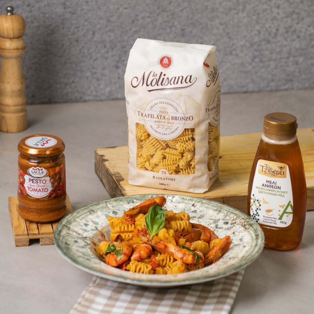 Αμέσως μετά βάζουμε τα μακαρόνια με λίγο νερό από αυτά και αφήνουμε την σάλτσα να δέσει για να χυλώσουμε με παρμεζάνα το πέστο και βασιλικό. Σερβίρουμε και από πάνω βάζουμε λίγο μέλι Τζιβέρτι.