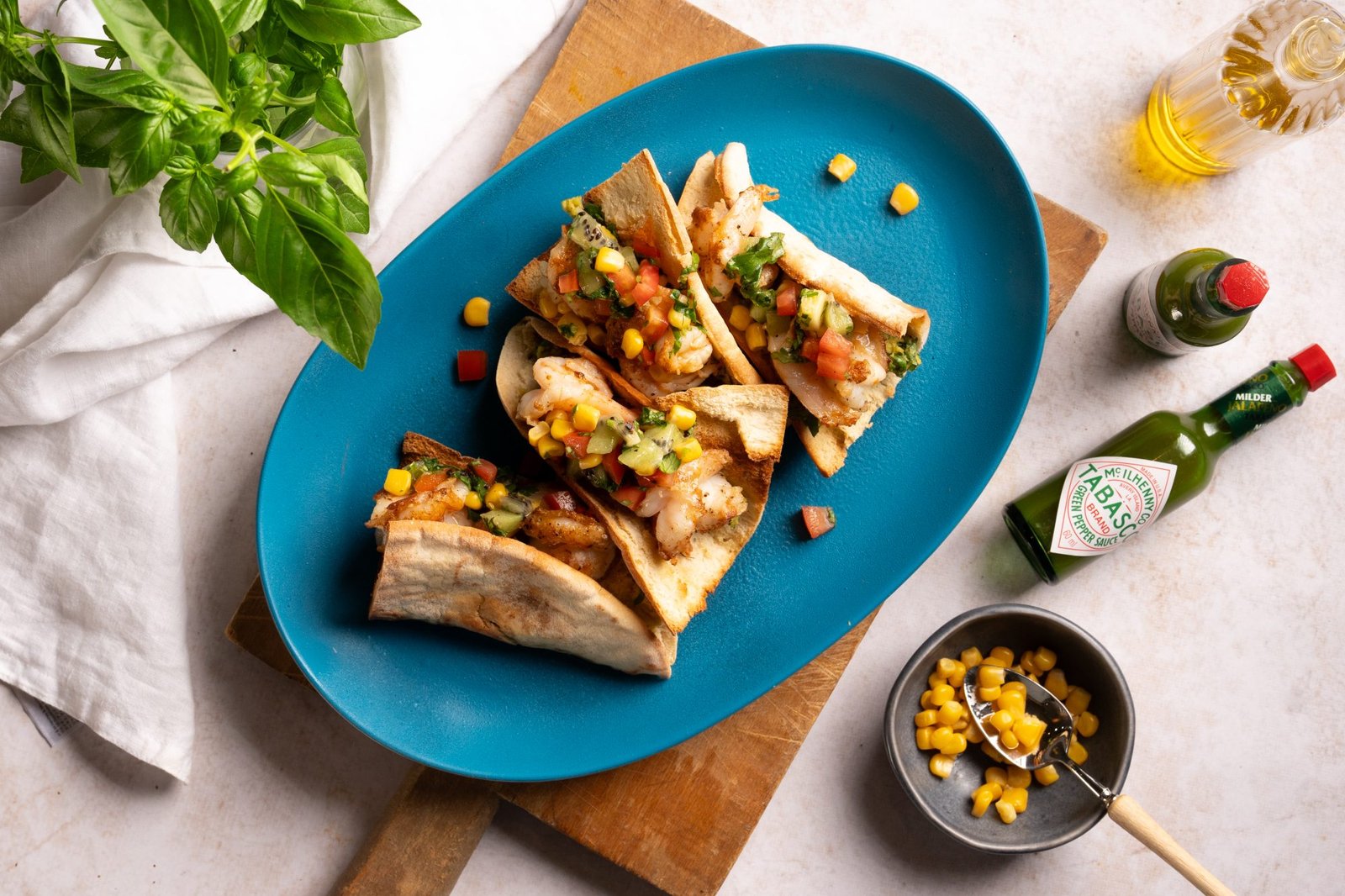 🍴 Νηστίσιμα τάκος με γαρίδες, guacamole και TABASCO® Green Pepper Sauce σε κυπριακή πίτα