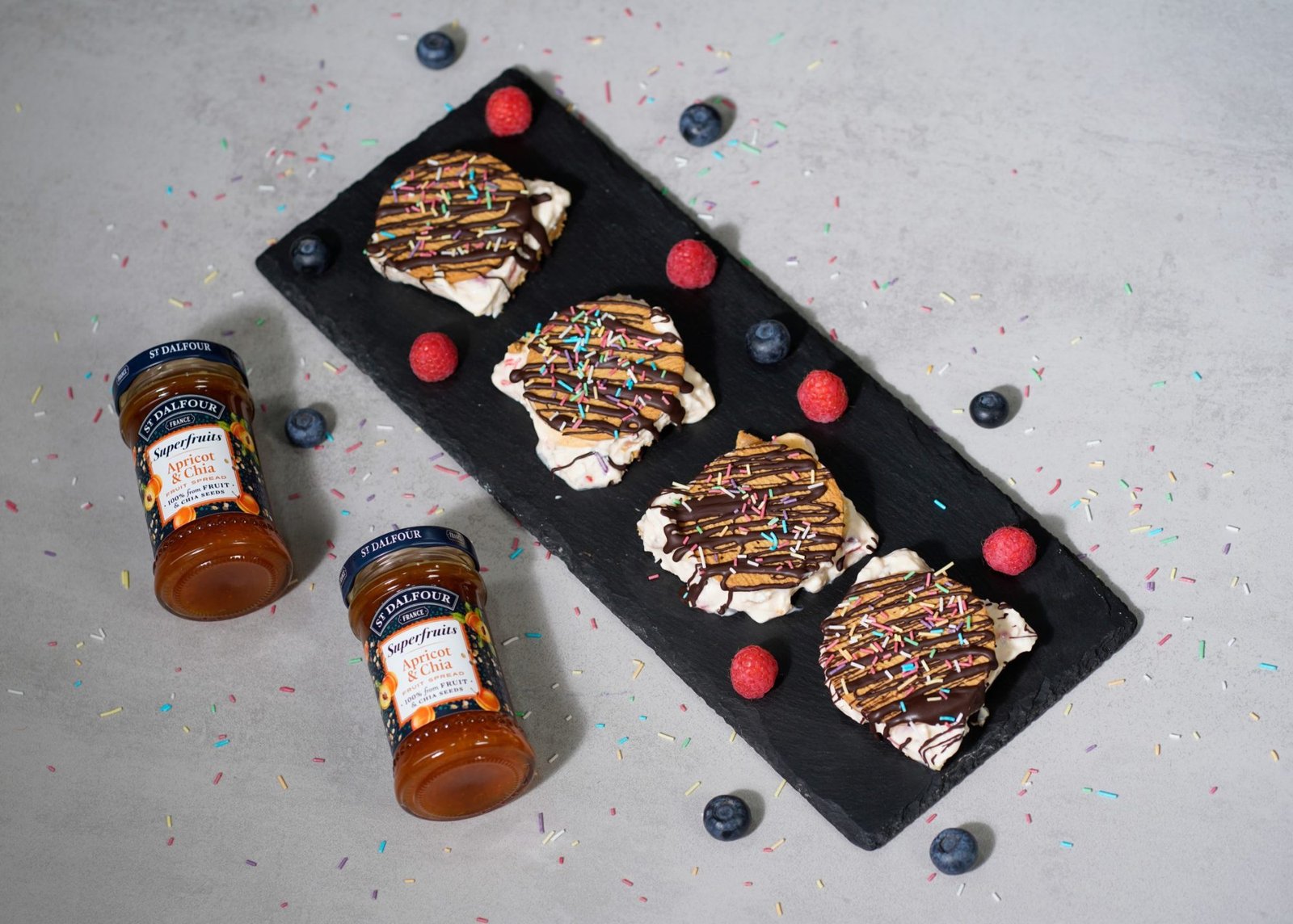 Ιούλιος = ICE CREAM MONTH 🍨 Ο μήνας του παγωτού έφθασε και εμείς το γιορτάζουμε με τον πιο γλυκό τρόπο! Ο σεφ Θεόδωρος Ελευθερίου και η αγαπημένη Τζωρτζίνα Θεοφάνους Κλινική Διαιτολόγος/Διατροφολόγος, δημιουργούν παρέα Παγωτό σάντουιτς με την νέα μαρμελάδα St. Dalfour Superfruits Βερίκοκο & Chia και εποχιακά φρούτα. Μια άκρως υγιεινή συνταγή που θα απολαύσεις χωρίς τύψεις και ενοχές 😉 Δες πιο κάτω τη συνταγή!