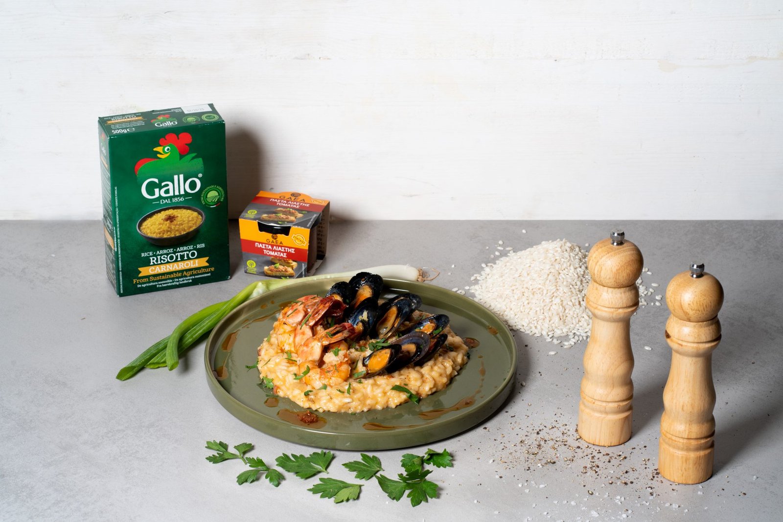Ριζότο Riso Gallo με μύδια, γαρίδες και GAEA πάστα λιαστής τομάτας από τον σεφ Βαγγέλη Μωραϊτη