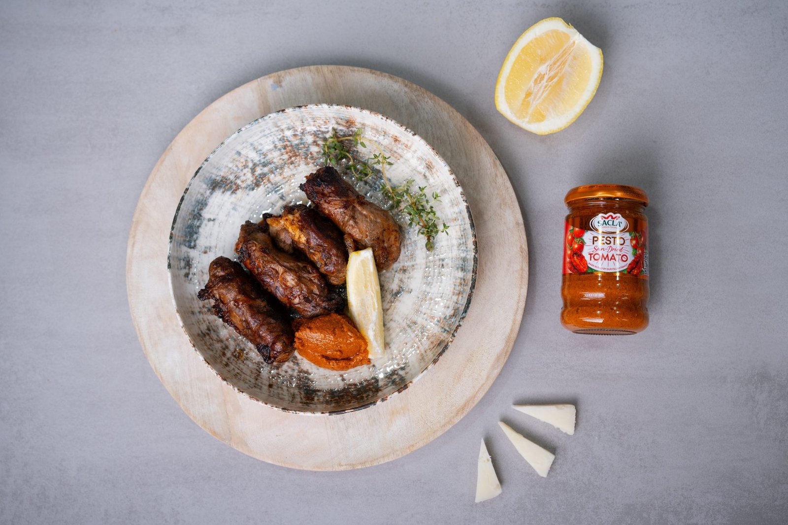 Σερβίρουμε με λίγη Sacla Πέστο Λιαστής Ντομάτας.