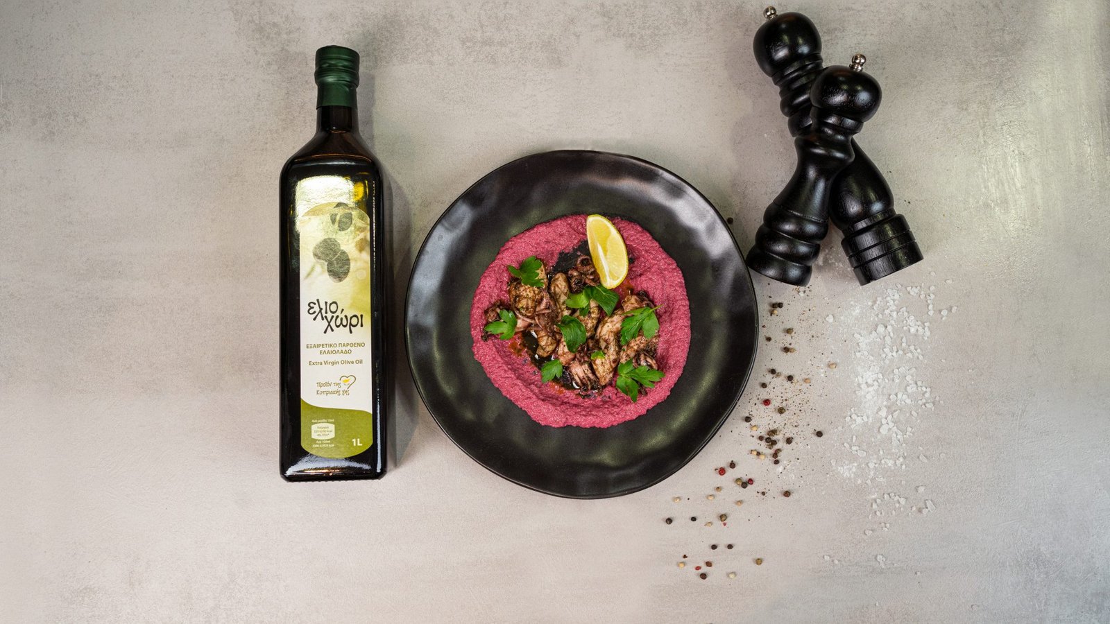 Καλαμάρι με ελαιόλαδο Ελιοχώρι και πουρέ παντζάρι από τον σεφ Θεόδωρο Ελευθερίου
