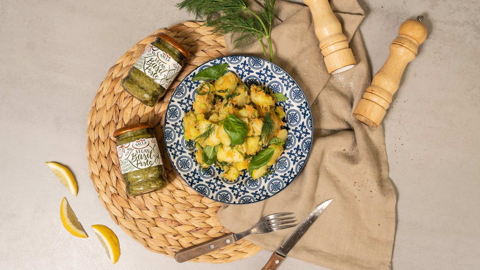 Αυτή η πατατοσαλάτα με Sacla Vegan Basil Pesto είναι το πιο ελαφρύ, χορταστικό και πεντανόστιμο γεύμα που θα μπορούσες να έχεις για μεσημεριανό! 😉 Today's menu check ✔️ Δες πιο κάτω τη συνταγή για να το φτιάξεις!