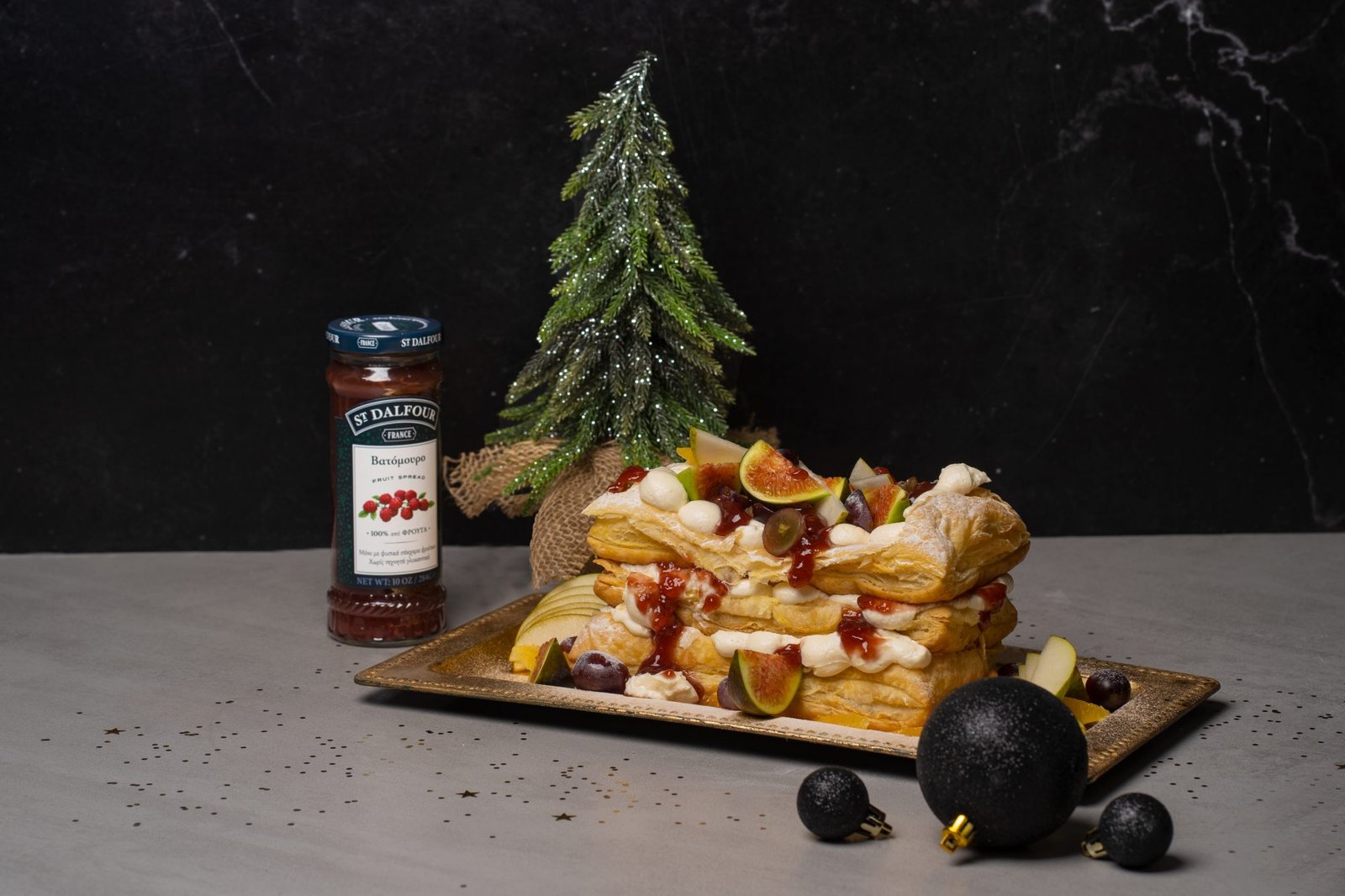 New Year's Eve Fact 🎄 Σε αυτό το εντυπωσιακό festive mille-feuille με μαρμελάδα St.Dalfour Βατόμουρο δεν θα μπορέσει να αντισταθεί...ούτε ο Άγιος Βασίλης 😉✨ Δες πιο κάτω πως να το φτιάξεις!