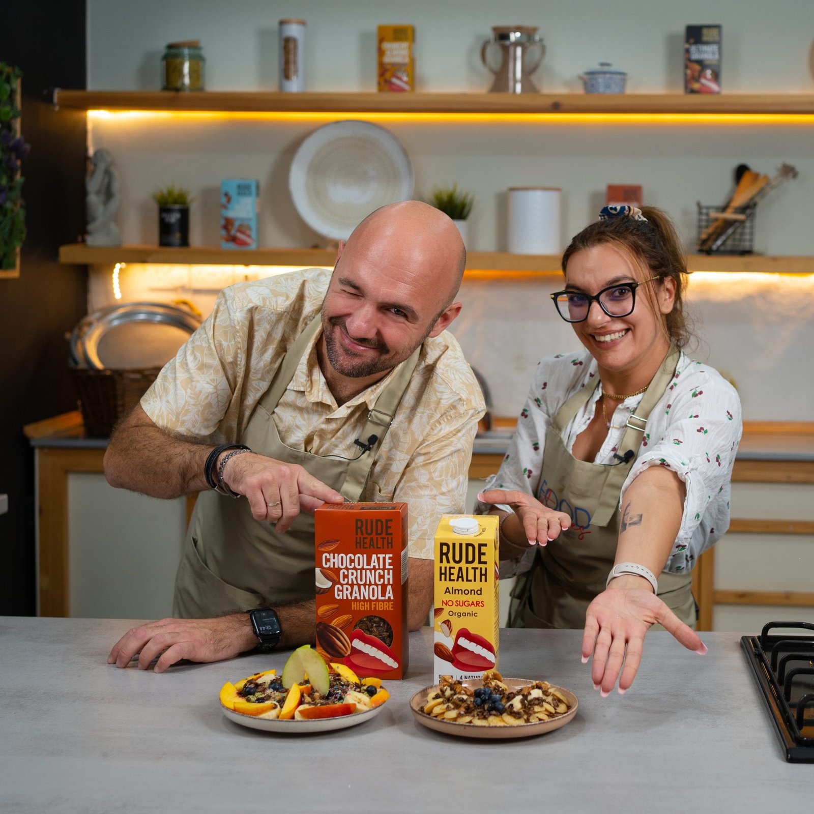 Χτυπάμε σε μπολ το Rude Health Almond No Sugars Organic Drink και το αυγό.