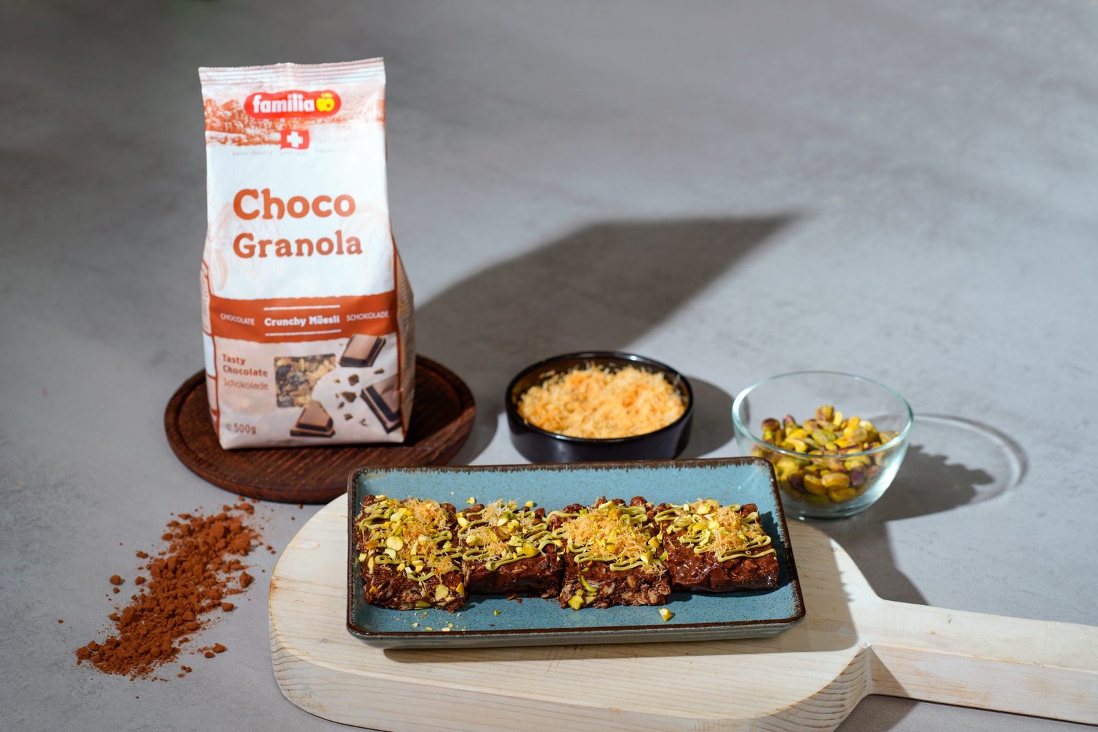 Μπάρες με πραλίνα φιστικιού, κακάο, χαλεπιανό, κανταΐφι και Familia Choco Granola 🍫✨ Ένας γευστικός συνδυασμός που δεν θα μπορείς να αντισταθείς! 😉 Σεφ: Γιάννης Γιαγκουλής 🧑🍳 Δες πιο κάτω τη συνταγή!