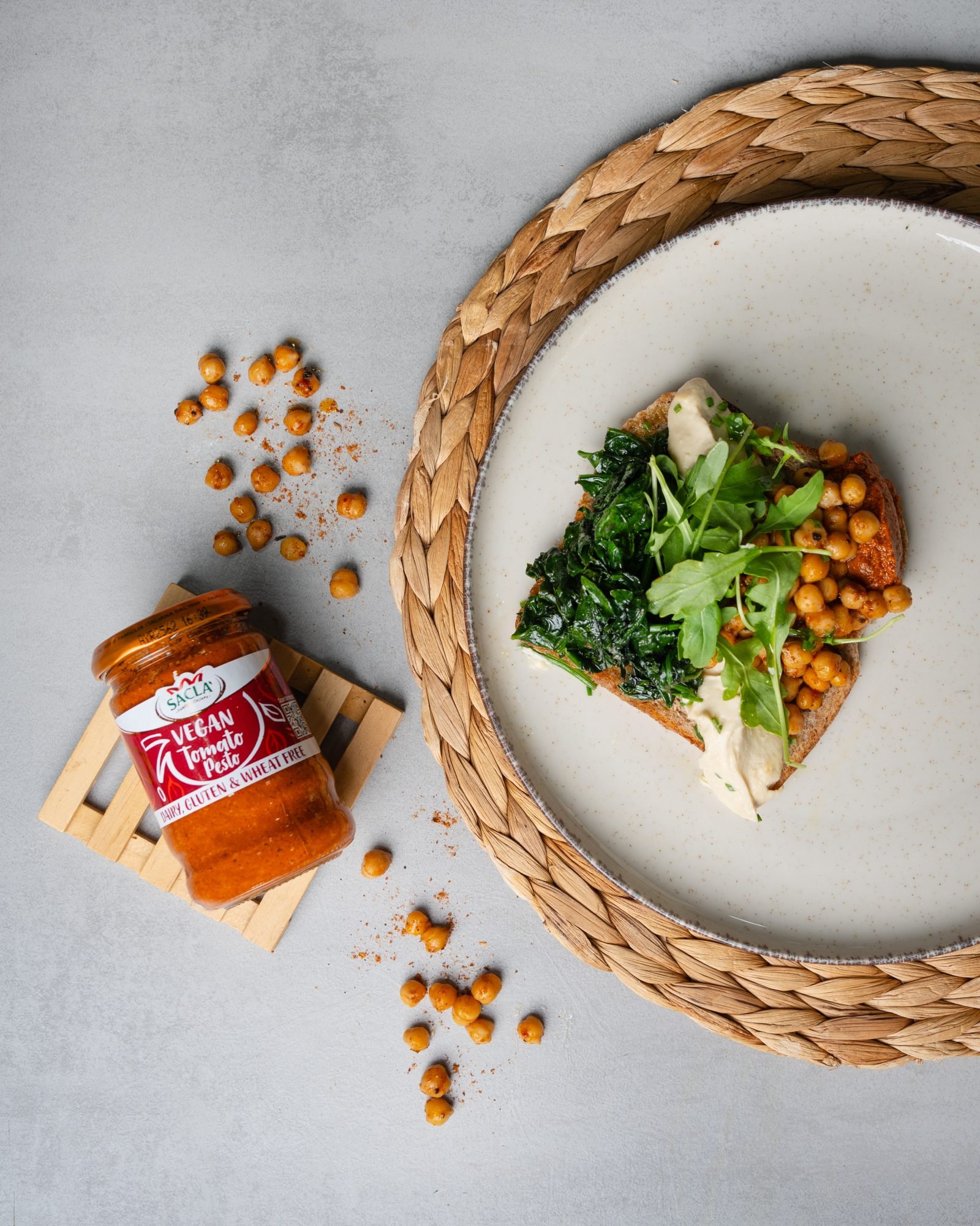 Eίσαι vegan ή όχι, αυτό το open sandwich με ρεβίθια αρωματισμένα με cajun, χούμους και Sacla Vegan Tomato Pesto θα γίνει σίγουρα η νέα σου healthy αγαπημένη επιλογή! 🌱🥪