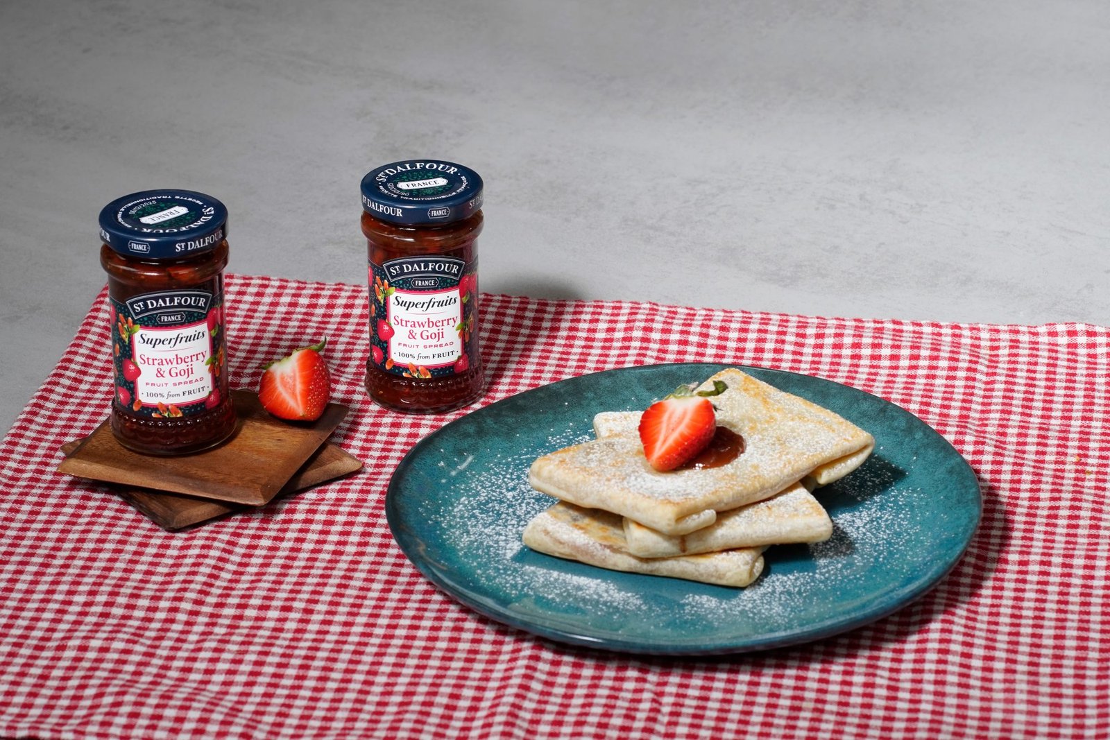 Πίτες της σάτζιης με μαρμελάδα St. Dalfour Superfruits Strawberry & Goji από τον σεφ Θεόδωρο Ελευθερίου