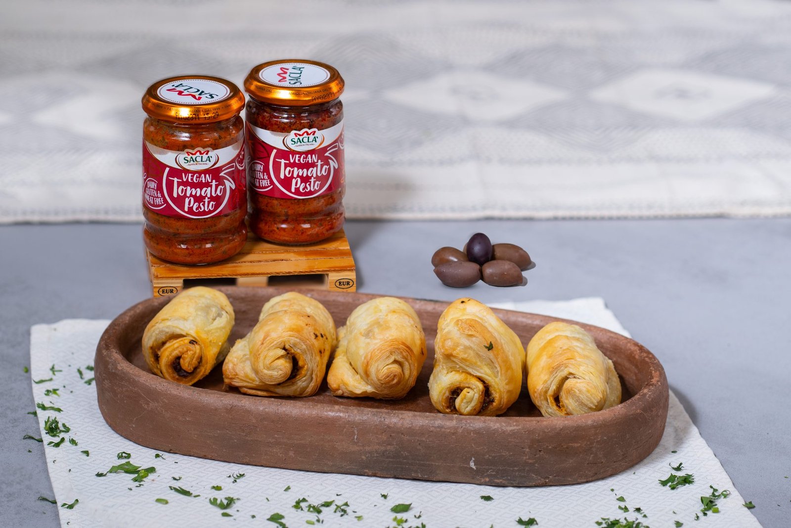 Τι πιο απολαυστικό από αφράτα σφολιατίνια φούρνου με ελιές και Sacla Vegan Tomato Pesto; 🫒🤤 Αυτή η συνταγή σίγουρα θα γίνει μια σταθερή επιλογή στο εβδομαδιαίο σου μενού! Δες πιο κάτω τη συνταγή!