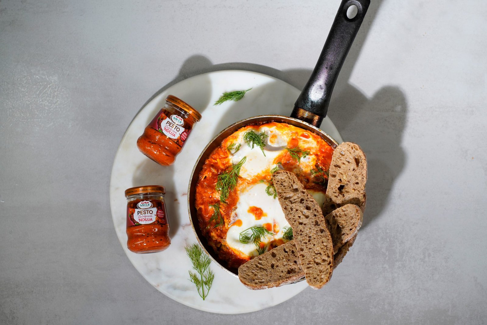 Shakshuka eggs με αρωματικά και Sacla Nduja Pesto από τον σεφ Γιάννη Γιαγκουλή